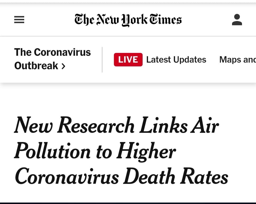 Article in New York Times: “New research links air pollution to higher corona death rates”