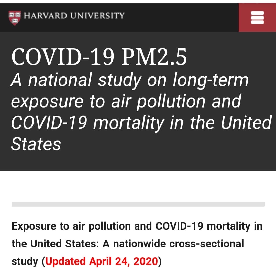 New research from Harvard shows that air pollution is linked to higher Coronavirus death rates. The more pollution in the air, the sicker people are likely to get.