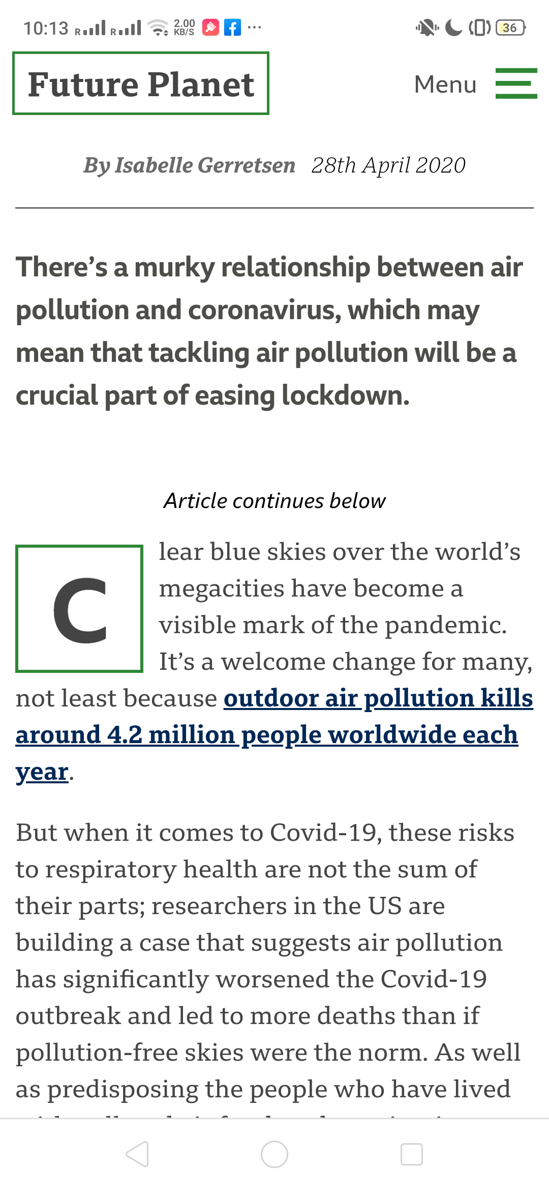 Article in NewScientist: “Are you more likely to die of Covid-19 if you live in a polluted area?”