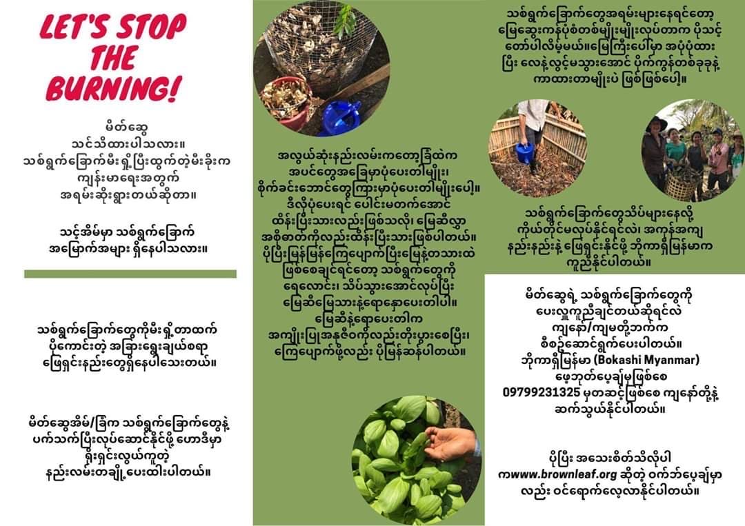 အောက်မှာ ပေးထါးတဲ့ လင့်ခ်တွေထဲလည်း ဝင်ရောက်ပြီူ အသေးစိတ်ဖတ်ရှုနိုင်ပါတယ်။ အရေးကြီးတာက ဒီနေ့ကစပြီး အပြောင်းအလဲကို ဖော်ဆောင်ဖို့ပါ။ မီးမရှို့တော့ဖို့ပါ။ နေ့ရက်တိုင်းက အရေးပါပါတယ်။ ဒီကနေ့ပဲ စပြီး မီးရှို့တာတွေရပ်တန့်ပါ။ ဒါလောက်တော့ လုပ်နိုင်တယ်မို့လား။