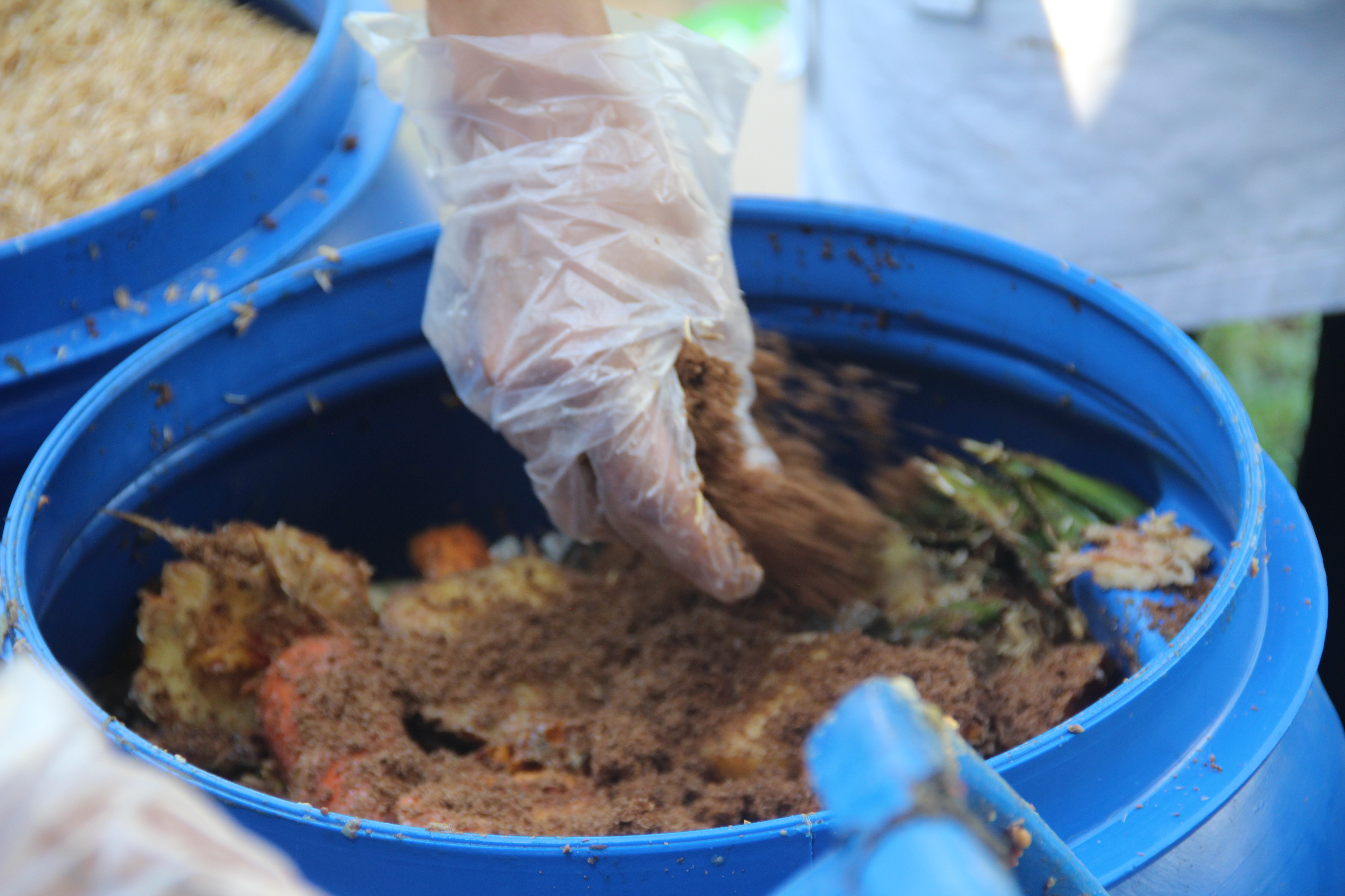We use 30 or 60 liter airtight barrels for fermenting food waste bokashi in bulk. This is what you need to know to get started.